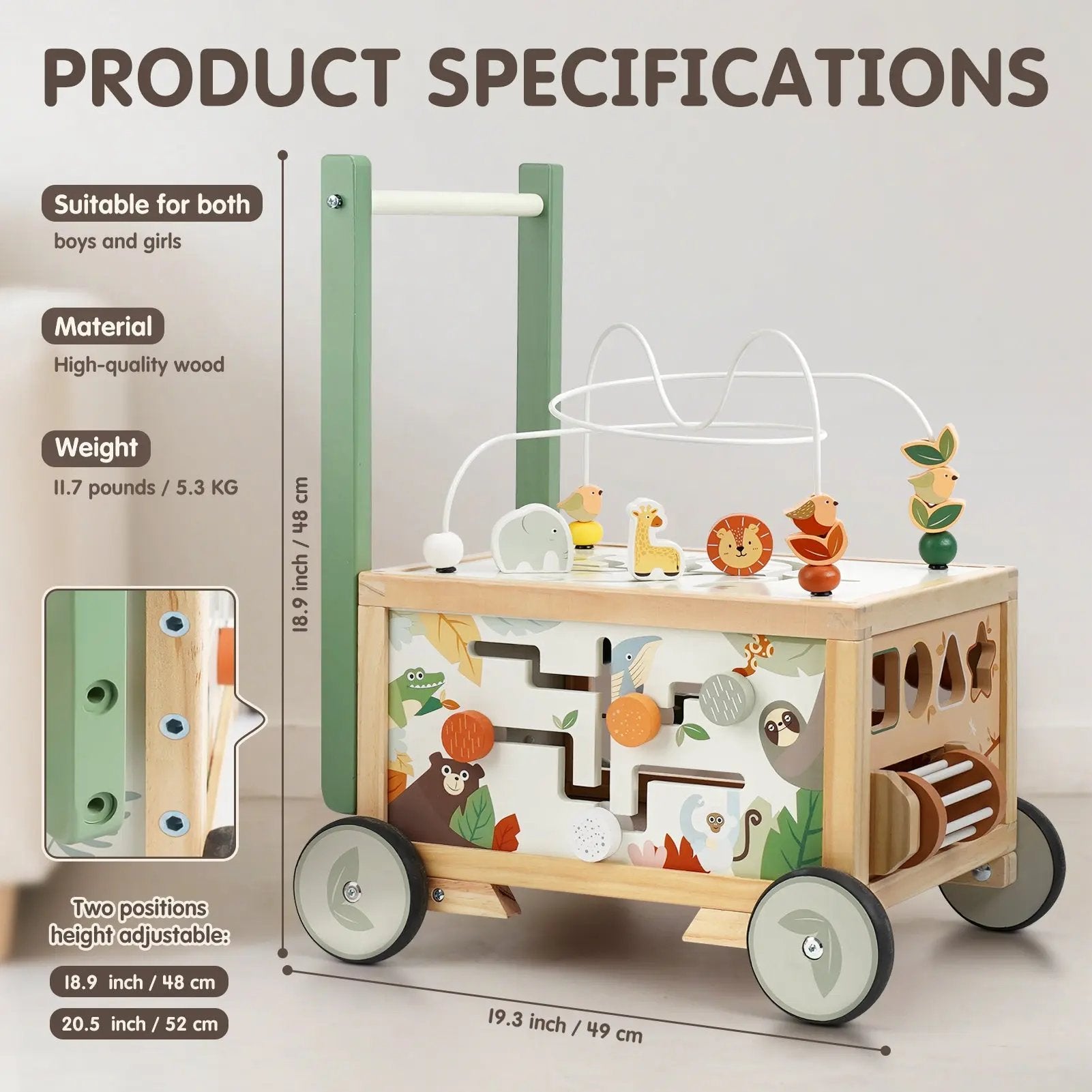 Adjustable Wooden Baby Push Walker - The Perfect Tool for Early Walking Development