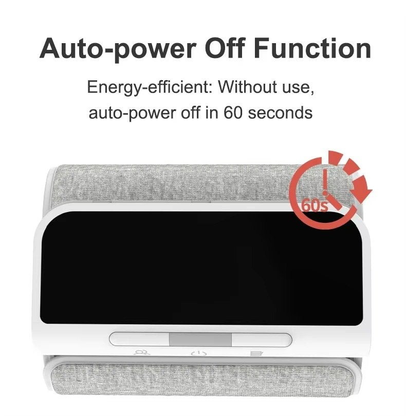 The adjustable cuff fits arm sizes from 22 to 42 cm and features smart wearing detection technology. Voice broadcasting assists you during measurements, with an option to mute for privacy. This device also includes irregular heartbeat detection and a 60-second auto power-off feature for enhanced safety and efficiency.